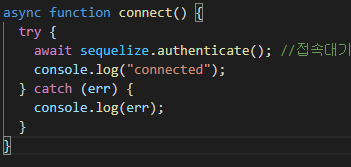 await sequelize.authenticate(); //접속대기