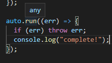 run메소드의 설명이 any라고 떠도 괜찮다. 레퍼런스가 되지 않아서 일어나는 일이지만 작동은 정상적으로 된다.