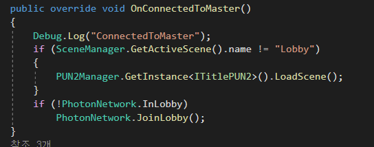 그리고 LoadScene을 한 이후에 JoinLobby를 하도록 햇는데 왜 LobbyManager를 찾기도 전에 OnRoomList가 먼저 실행됐는지도 의문이다 => 아마도 Update에서 자동으로 찾도록 해두어서 그럴것이라는 생각이다.