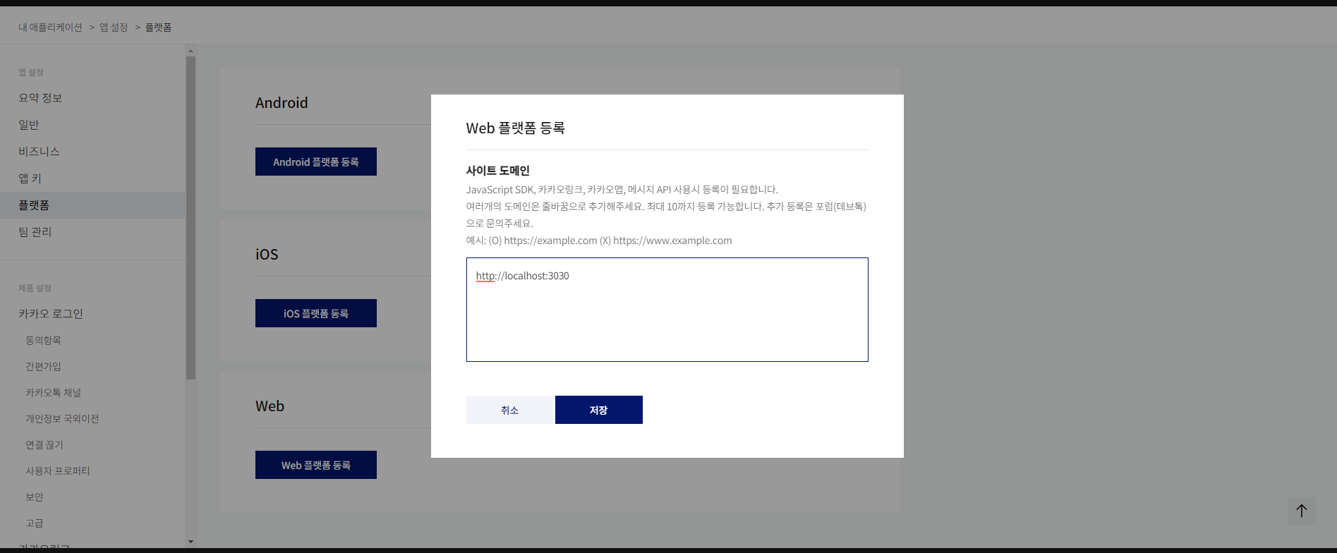 - Web플랫폼을 등록해주고 콜백URL을 만들어주자.