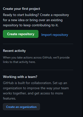 - 접속한 뒤에 화면 왼쪽에는 위 사진과 같은 탭이 있는데, Create repository를 눌러주자.