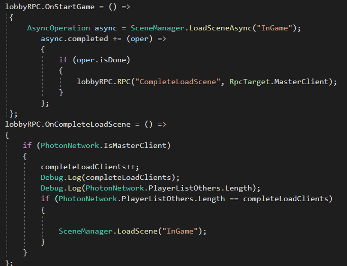 - 전달받은 RPC의 갯수와 클라이언트들의 수가 같다면 마스터도 씬을 로드한다.