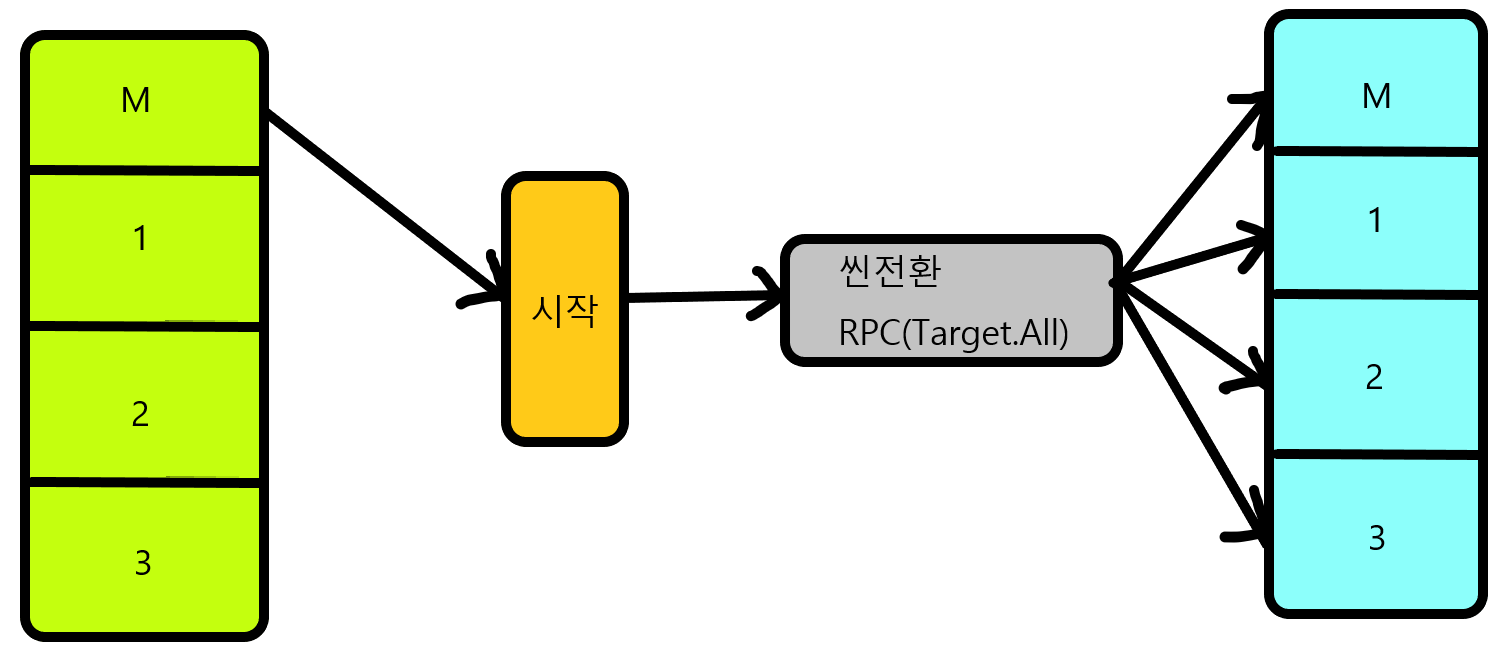 - 클라이언트들이 씬전환을 하면 RPC로 마스터에게 씬전환을 완료했다고 전송한다.