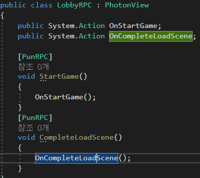 우선 들어가기에 앞서 나는 모든 씬마다의 RPC를 따로 스크립트화 하여 대리자형식으로 실행했다