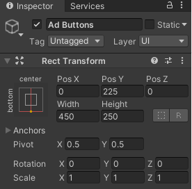 - 이런식으로 구조를 바꿨고 각 버튼에 붙어있던 AD매니저들을 Ad Buttons 즉, 부모오브젝트에서 버튼을 관리하도록 유도했다.