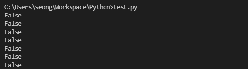 사실 (), {}, [], "" , 숫자 0 과 같이 비어있는 경우를 제외하고는 False 로 판단되는 값들이 많지는 않습니다. 그리고 당연하게도 False 값은 False 로 평가됩니다.