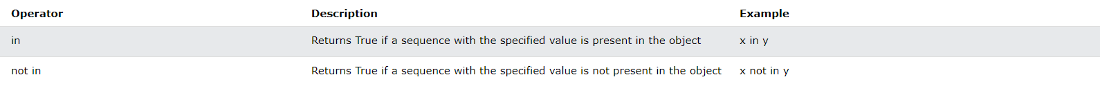 - Membership operators : 멤버쉽 연산자