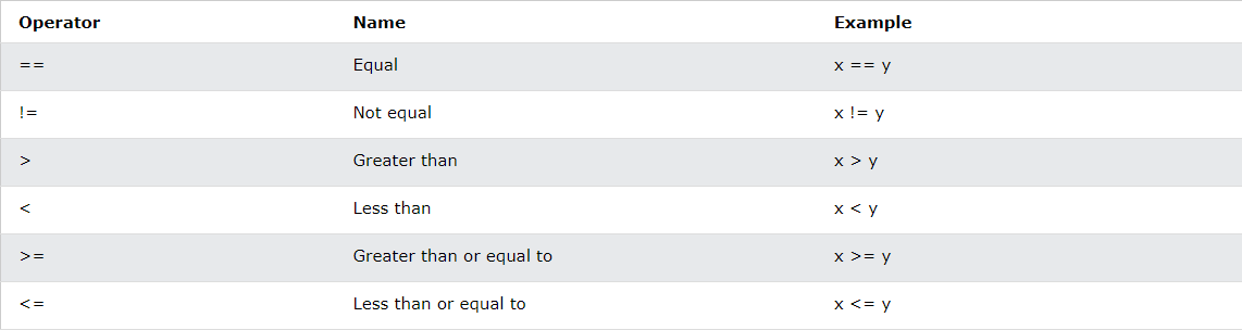 - Comparison operators : 비교 연산자