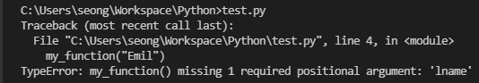 하지만 위와 다르게 요구하는 인수의 개수와 다르게 인수를 할당한다면 :