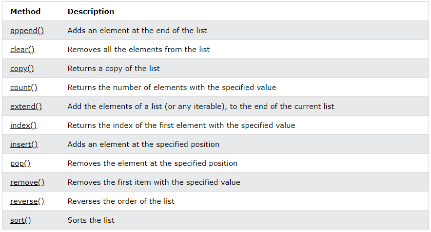 파이썬에는 리스트/배열 에서 사용할 수 있는 빌트인 메서드들이 존재합니다.