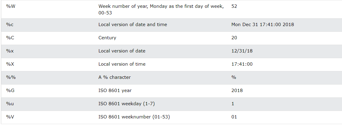 이 메서드는 strftime() 이라고 불리며, format 이라는 반환할 문자열을 특정하기위한 하나의 매개변수를 가집니다.
