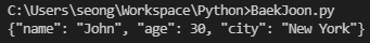 파이썬은 json 이라고 불리는 빌트인 패키지를 갖고있으며 이것은 JSON데이터로 작업을 할 때 사용됩니다.