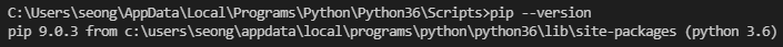 - 경로 입력은 [cd "경로"]식으로 입력한 뒤에 [pip --version]을 입력하면 됩니다.