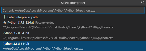 - 위 사진과 같이 cmd에서는 Python 3.6.5만 설치되어있고 VSC에는 3.6.5와 3.7.8 모두 설치되어 있습니다.