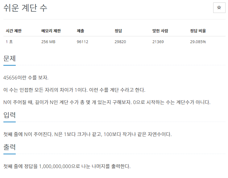 백준 22.02.12. 10844번 - 쉬운 계단 수 본문