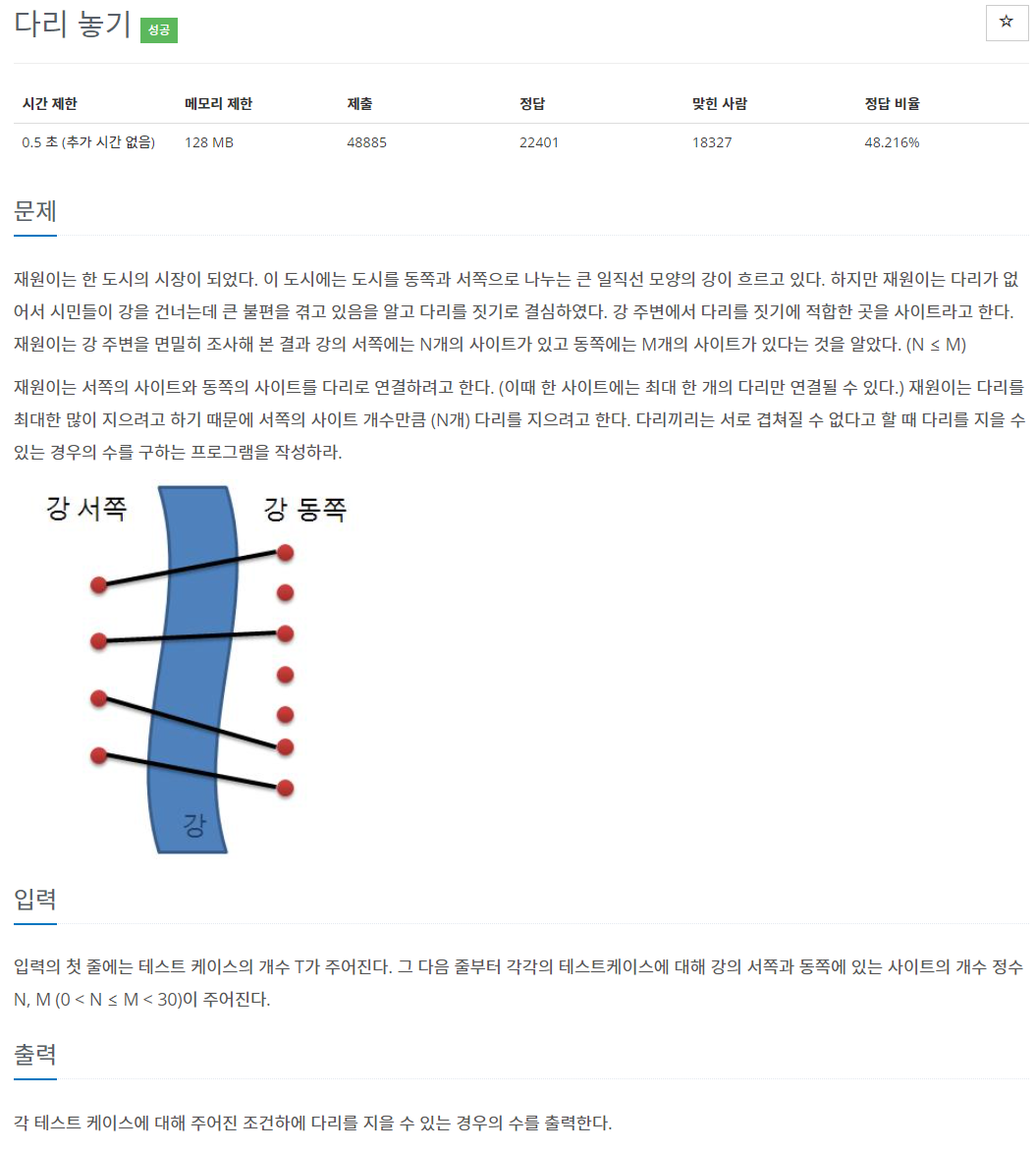 - 결국 서쪽 다리와 동쪽 다리의 조합을 구하는 문제입니다.
