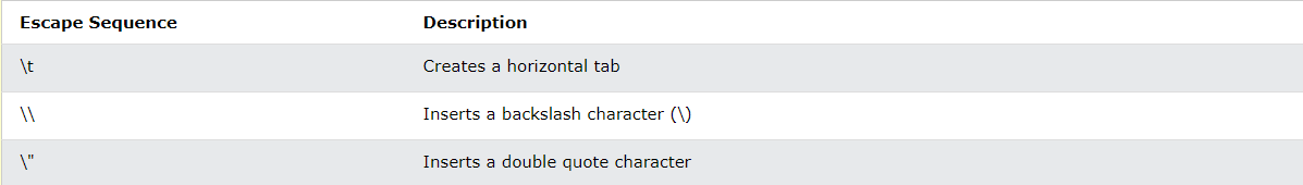 | Escape Sequence | 설명 |