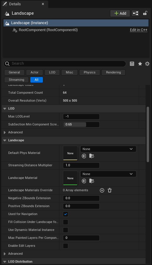 Landscape에 광택을 빼주기 위해서 Details에서 rough를 검색하여 Fully Rough를 활성해줍니다.