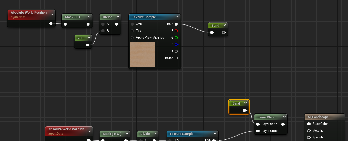 Unreal Engine 5로 첫 게임 만들기 6(Landscape Material, Alpha Lerp, Vector3, Reroute, Component Mask, Divide, Absolute World Position) 본문