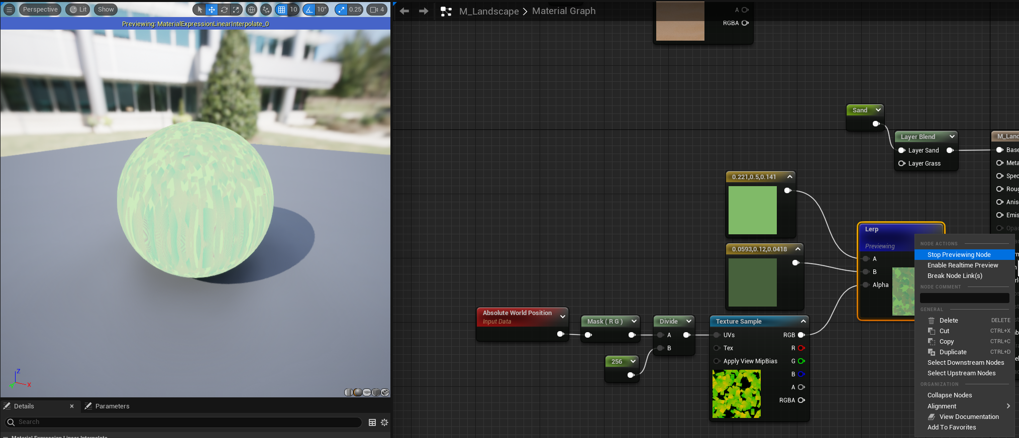 Unreal Engine 5로 첫 게임 만들기 6(Landscape Material, Alpha Lerp, Vector3, Reroute, Component Mask, Divide, Absolute World Position)