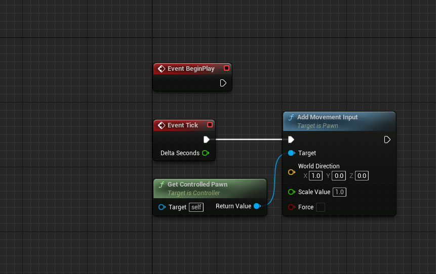 이것을 Add Movement Input에 연결시키고 Input과 Tick을 연결하여 틱마다 호출되게 합니다.