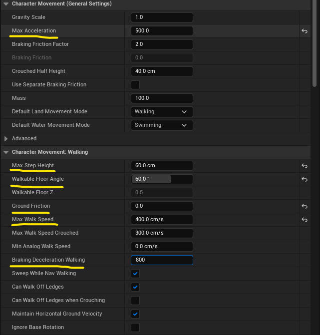 Bot > Character Movement > Character Movement(General Settings), Chracter Movement: Walking 을 봅시다.