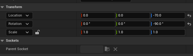 이것을 바로잡기 위해 Skeletal Mesh로 가서 Z축의 높이를 -70으로 설정하면 알맞을 것입니다.