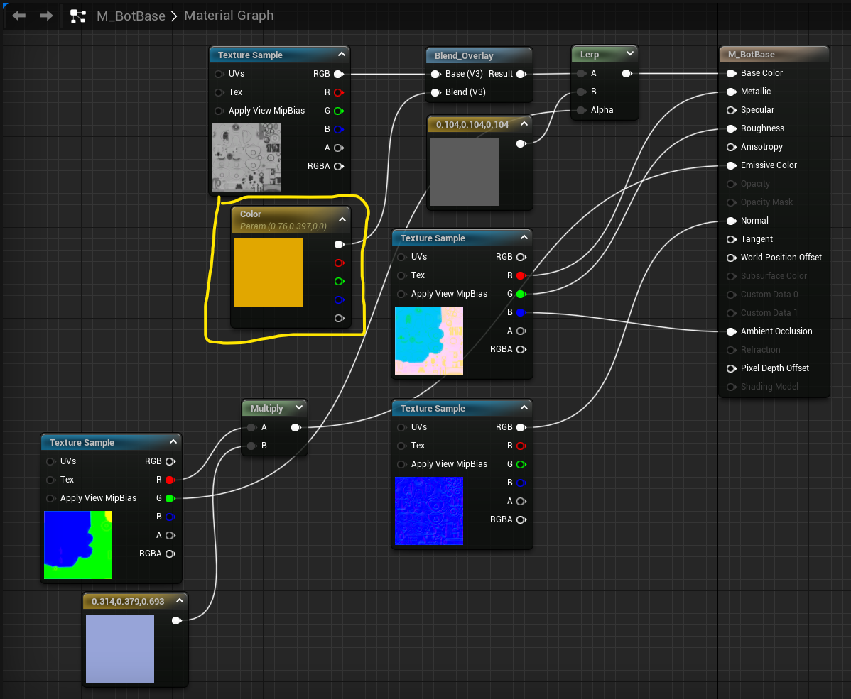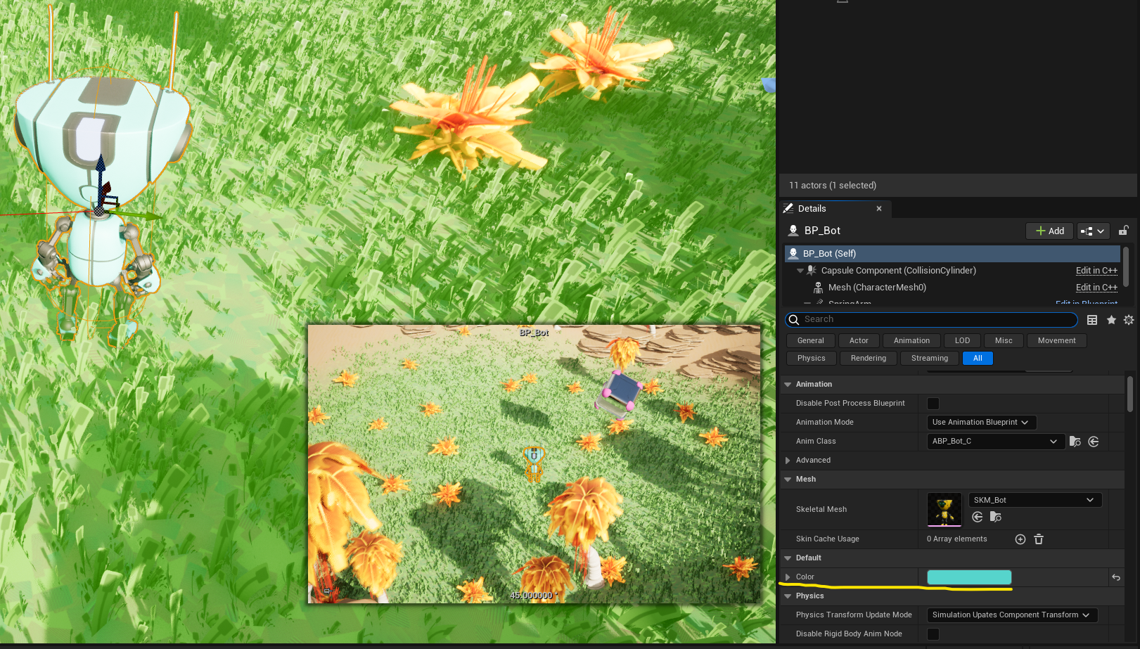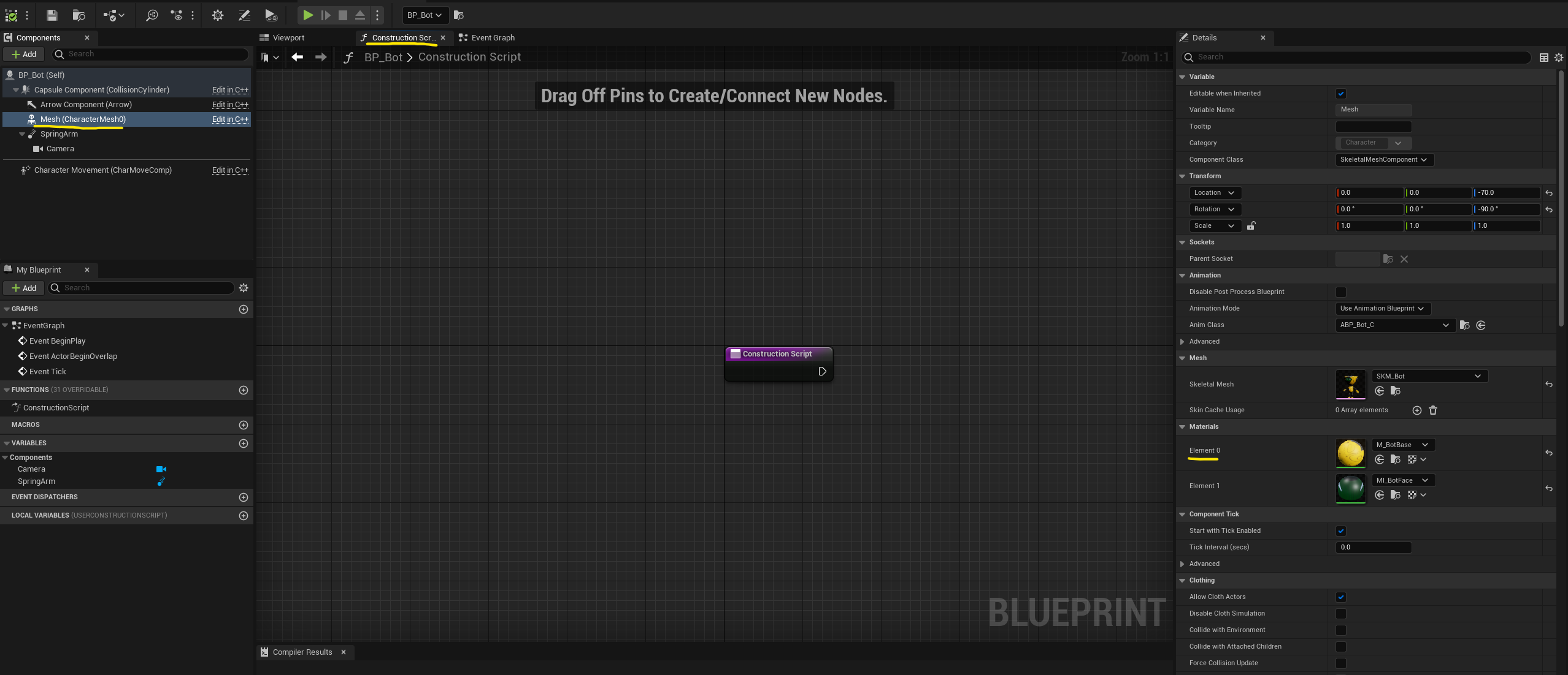 BP_Bot > Construction Script > Mesh로 들어가서 머티리얼을 보면 바디 머티리얼은 Element 0인 것을 볼 수 있습니다.