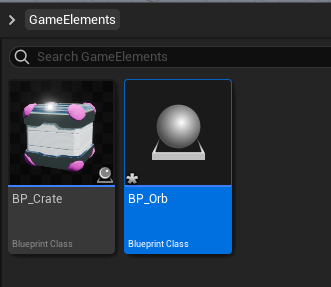 GameElements 폴더에 새로운 블루프린트를 만듭니다.