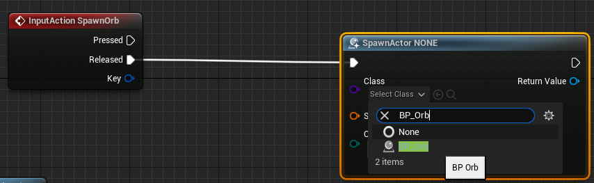 이제 컨트롤러로 돌아가 SpawnOrb를 검색하여 추가합니다.