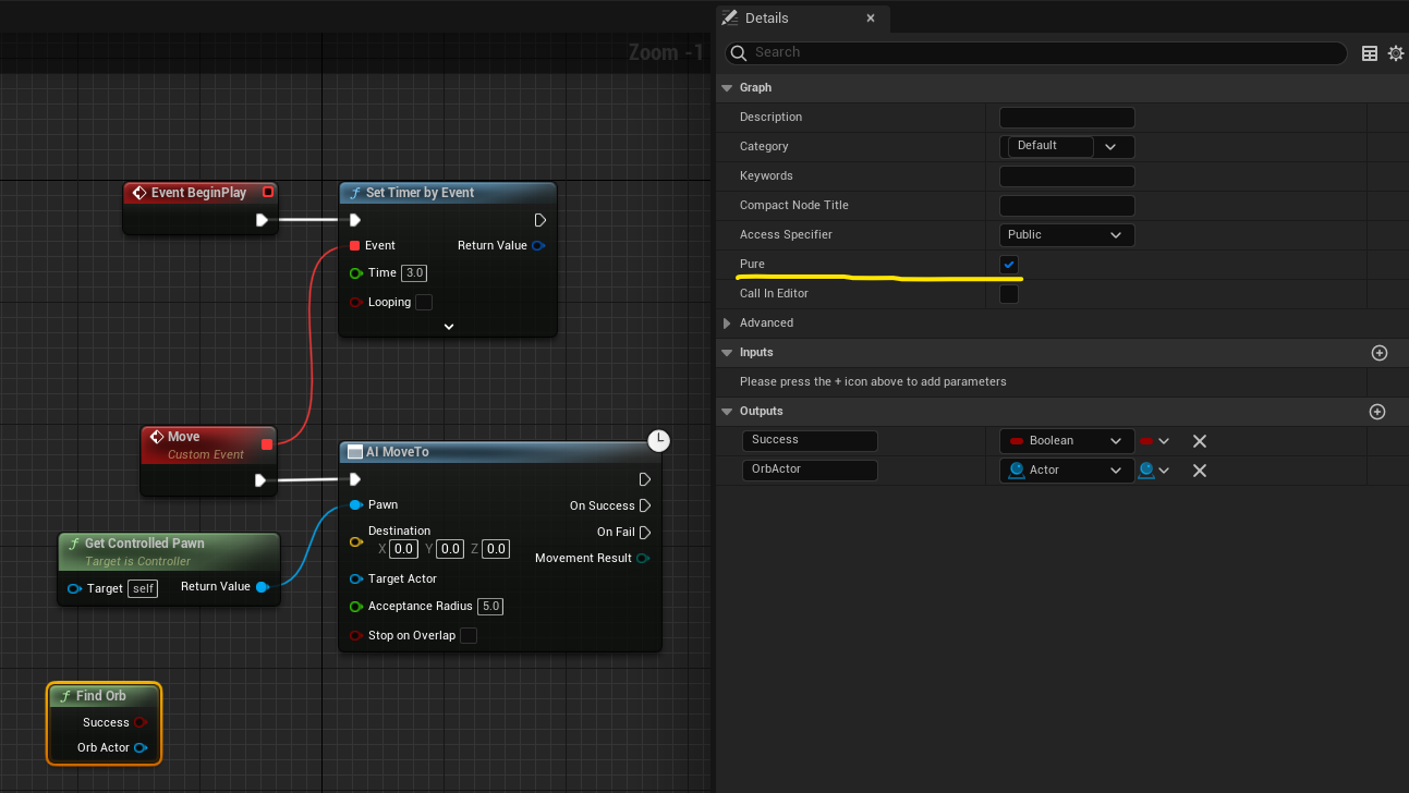 FindOrb함수에서 출력부분에 Boolean타입의 Success와 Actor타입의 OrbActor를 추가해주세요.