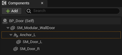 이것을 알맞은 위치로 옮긴 뒤, Anchor_L하위에 SM_Door_L메쉬를 넣어주세요.