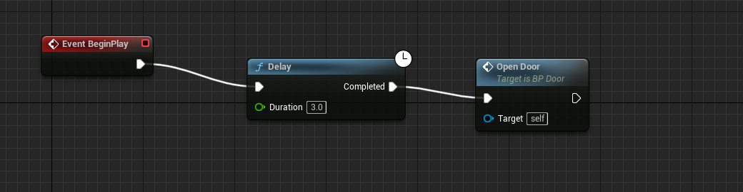 Event BeginPlay를 추가하고 3초 Delay시킨 후 Open Door를 실행시킵니다.