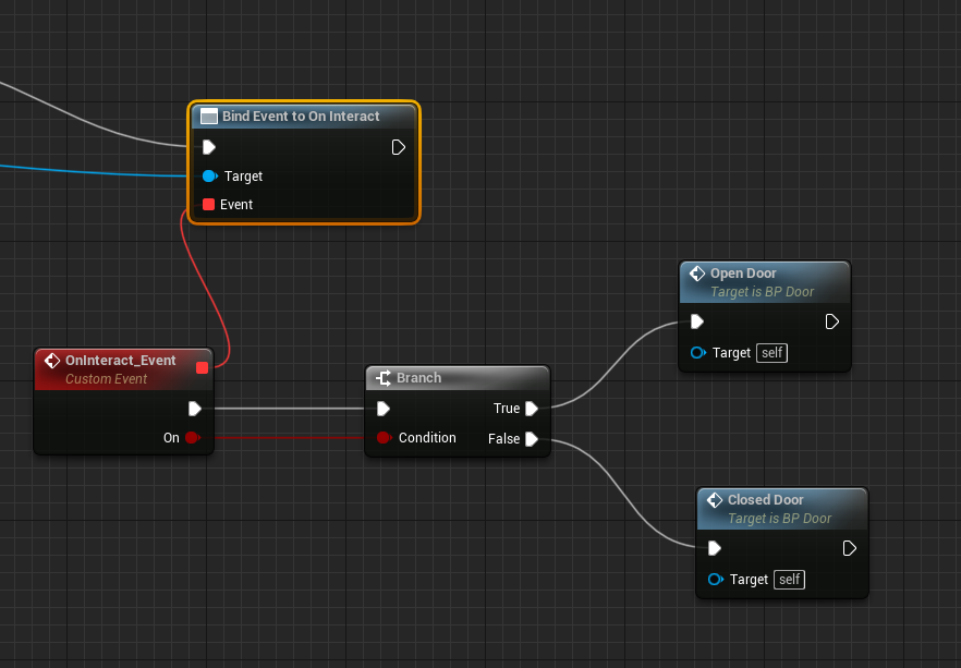 OnInteract 이벤트에서 Branch를 사용하여 True / False일 때 서로 다른 함수를 실행할 것입니다.