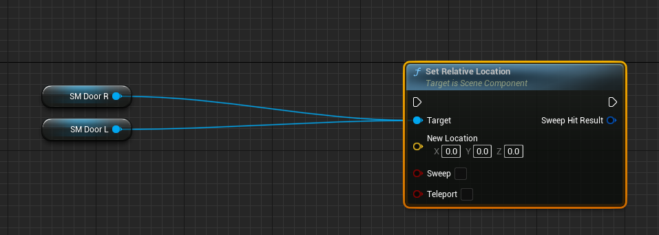 SM_Door_R, L을 가져와 이번에도 Set Relative Location을 연결해줍니다.
