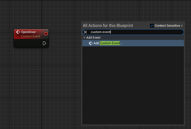 Custom Event를 추가하고 이름을 OpenDoor로 만들어줍니다.