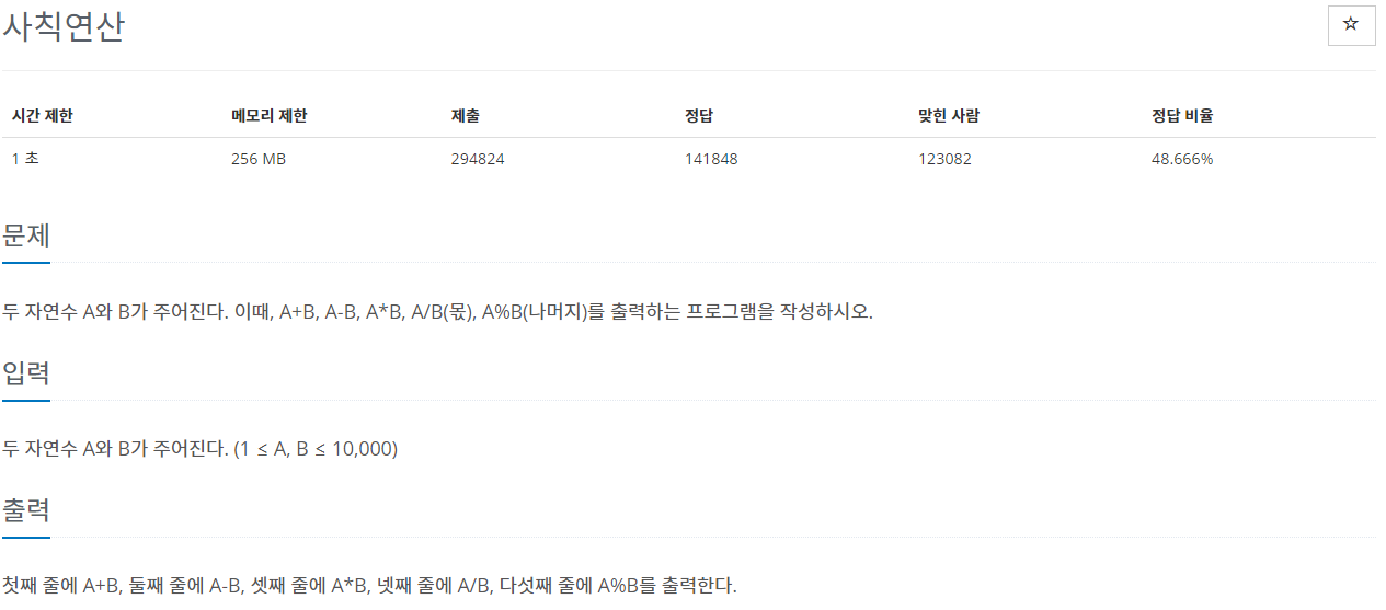 (Python/C#/C++) 백준 10869번 - 사칙연산 본문