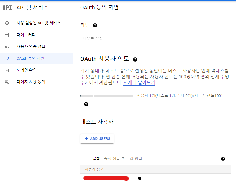 - Google Console에서 해당 프로젝트의 테스터로 알맞게 설정이 되어있는가?