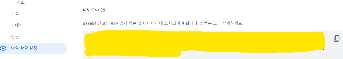 이것은 Google Play Console > 해당 프로젝트 > 수익 창출 섹션 > 수익 창출 설정에 들어가보면 라이선스 키를 찾을 수 있습니다.