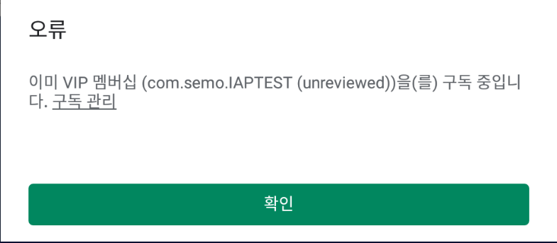 Consumable로 설정했다면 몇번을 결제해도 위와 같은 창이 나옵니다.