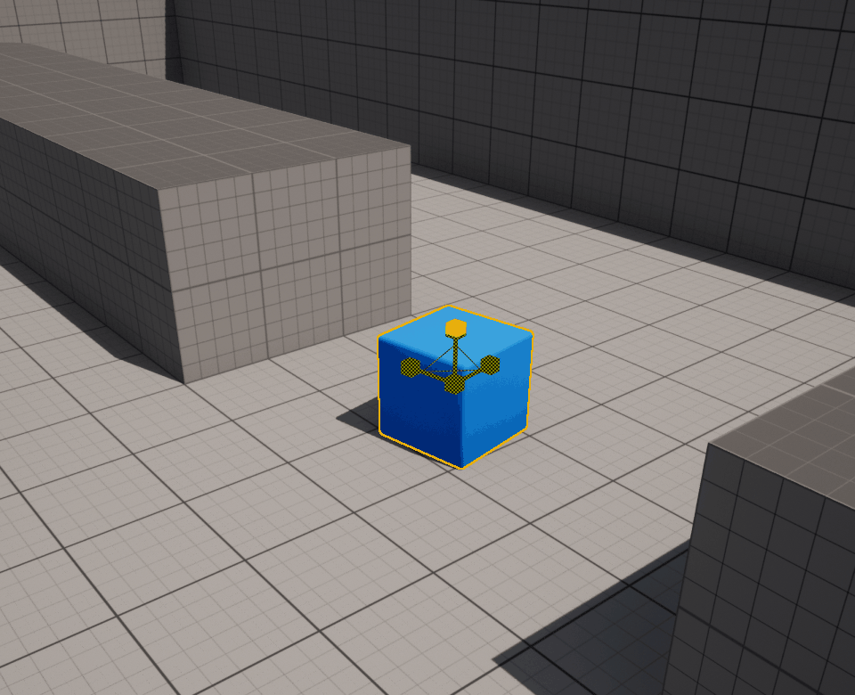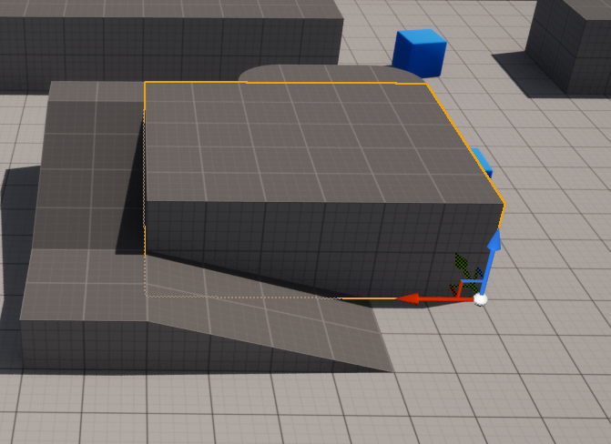 하지만 Actor의 모든 축의 비율을 기존과 같게 유지하며 크기를 키우고 싶다면, Gizmo의 모든 축이 모이는 흰색 포인트를 클릭하여 드래그로 키워주면 된다.