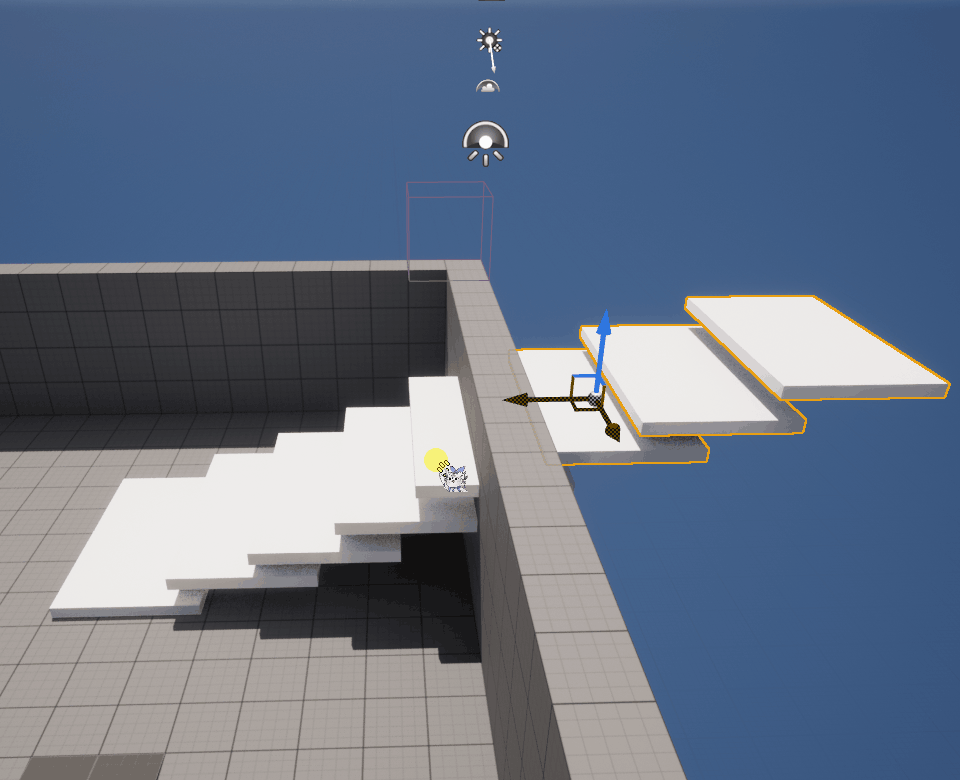 Play를 눌러 확인해보면 내가 만든 계단들이 구현이 되어있고, 담장 밖으로 넘어갈 수 있다.