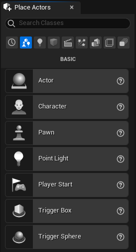 Viewport내에서 PlayerStart를 옮기면 재생 시 옮겨진 PlayerStart 위치에서 캐릭터가 생성되며 시작된다. 만약 PlayerStart Actor를 지웠거나 사라졌다면, 이전에 살펴봤던 Place Actor에서 PlayerStart Actor를 새로이 생성할 수 있다.