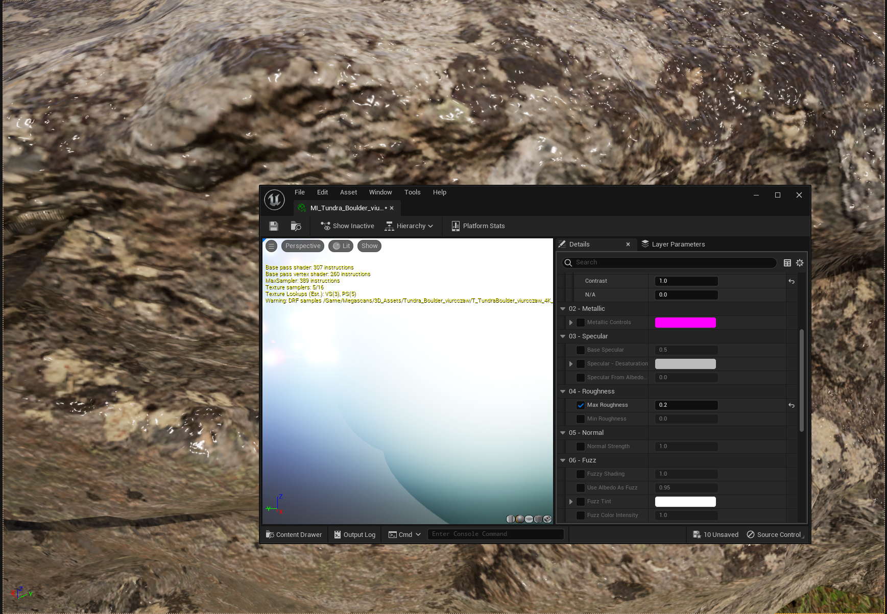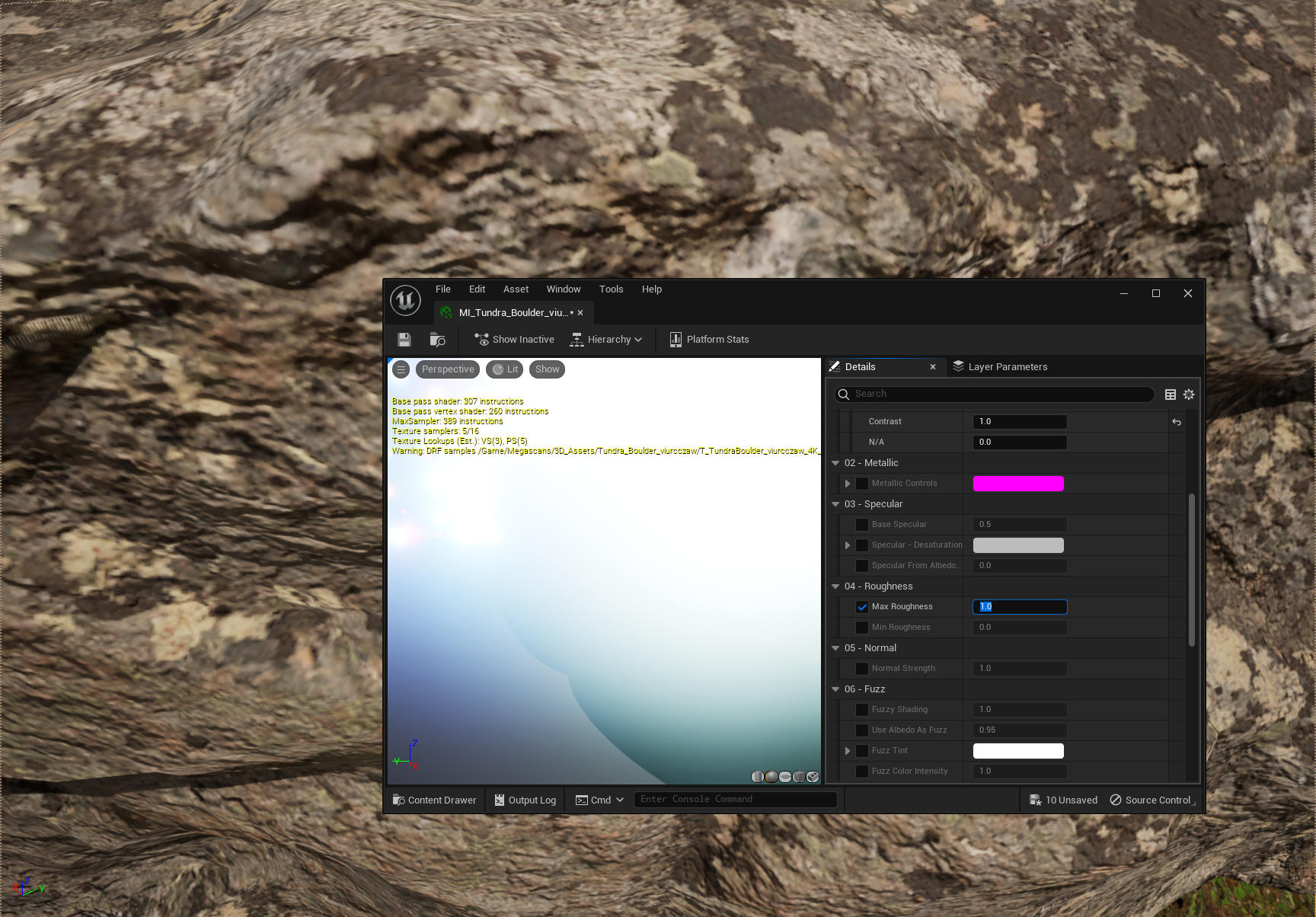 04 Roughness > Max Roughness의 값을 살짝 낮추고 에셋을 봐보자.