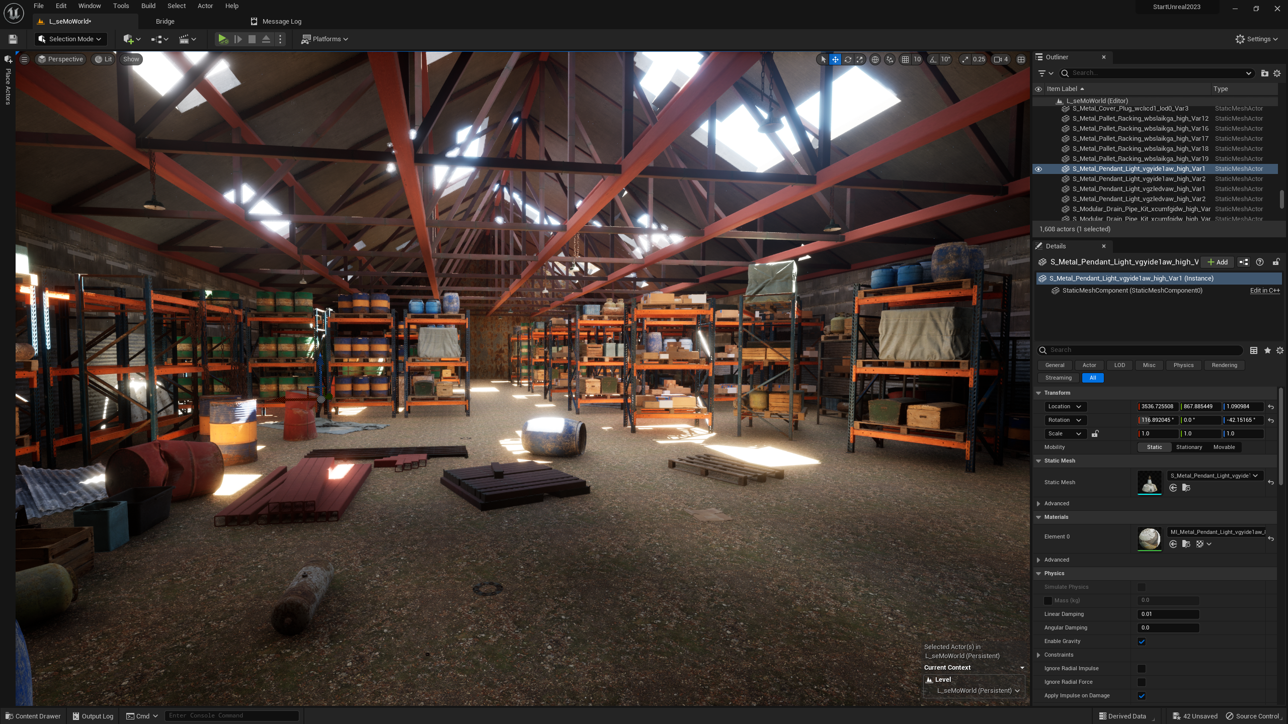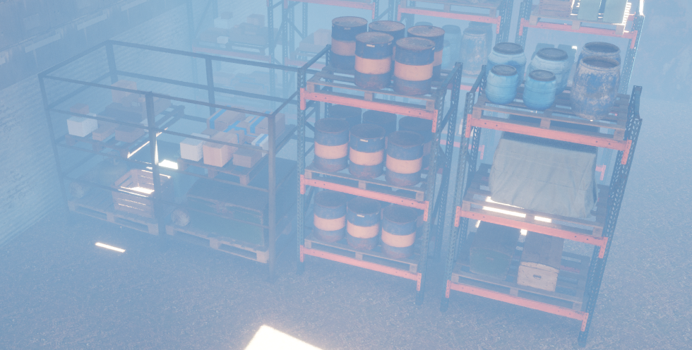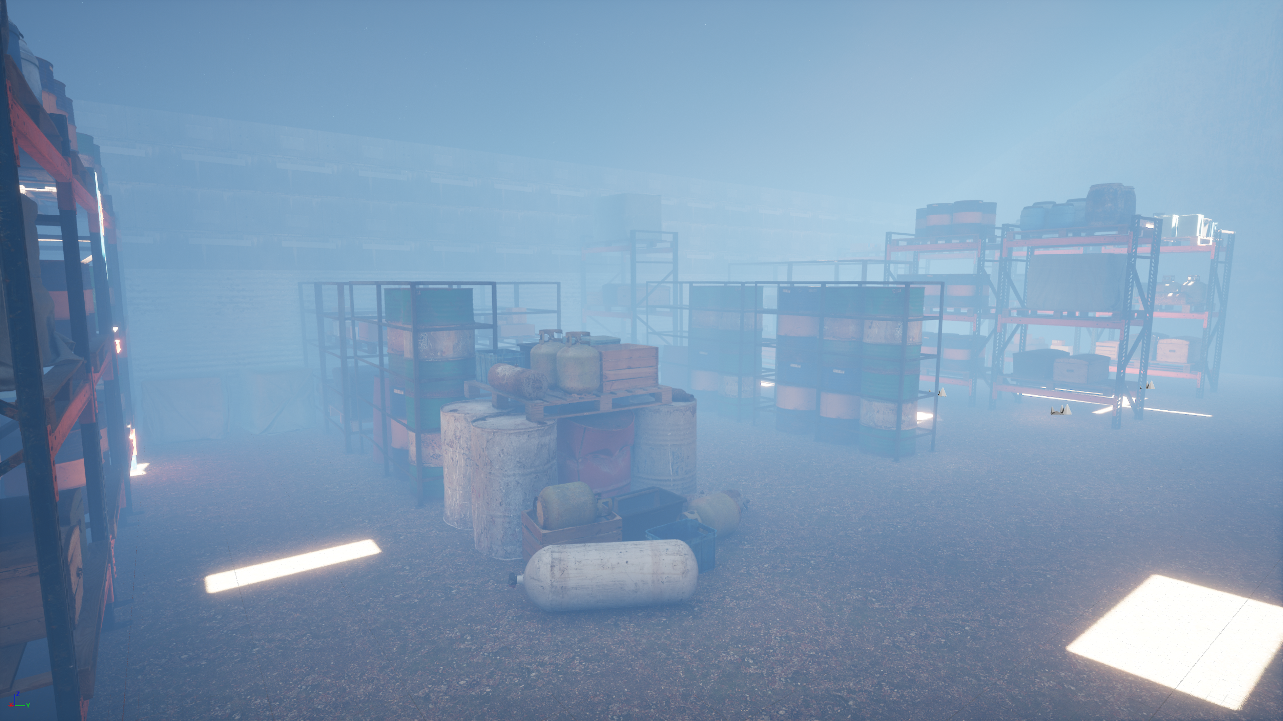 램프배치와 창고 내부 부족한 부분 배치까지 마쳤다. 이번 영상의 내용은 여기까지며 추가로 Directional Light의 각도를 조절하여 원하는 조광을 연출할 수 있으니 잘 마무리 해보자.
