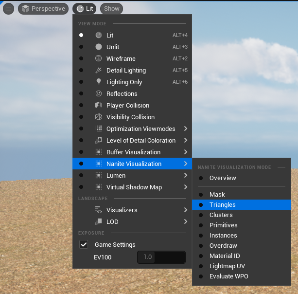 그리고 확인해보면 이젠 나나이트 시각화에서 보인다. 나나이트가 잘 적용됐다는 뜻이며, ReMesh와 Displace를 통해 Static Mesh에 굴곡을 구현한 것이 실제로 표현되고 있음을 쉽게 확인할 수 있다.