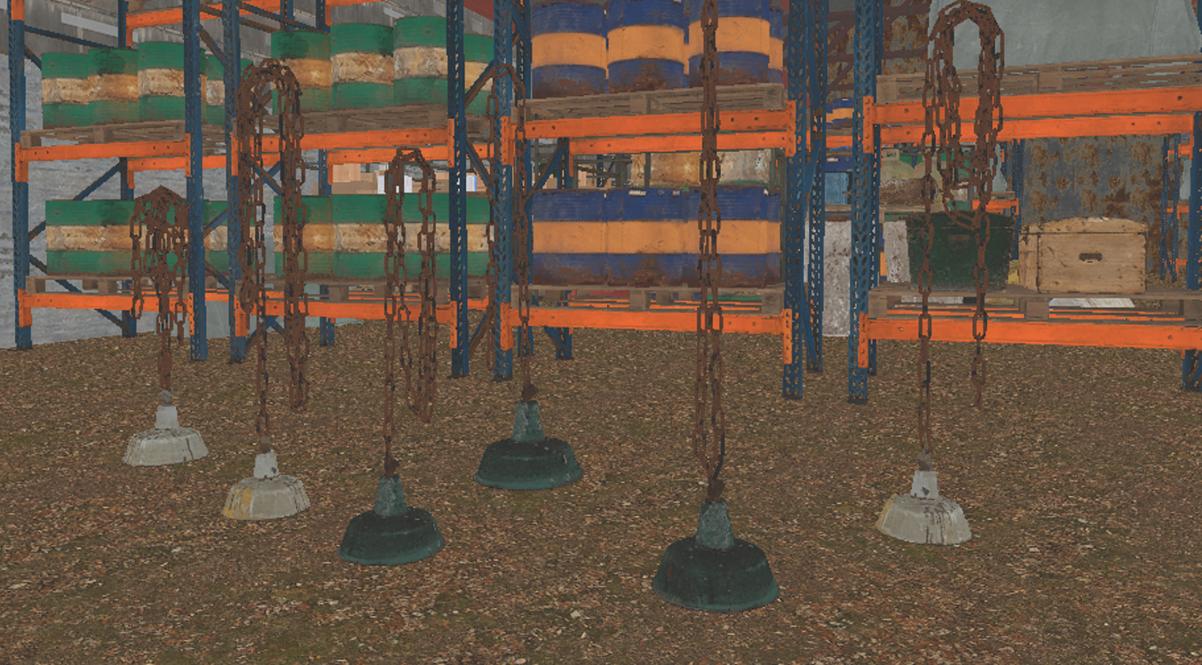 천장 구조에 조금 더 붉은 빛을 띄는 빔 에셋을 추가하여 마무리해줬다. 이제 이 철골에 조명을 달아줄 차례다.