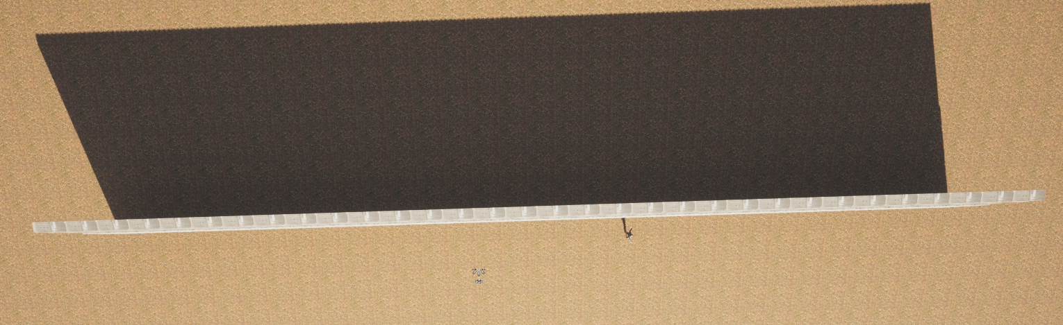충분히 길고 높게 쌓았다면 하늘에서 바라보고 모든 타일을 선택하여 복사할 것이다. 맞은편에 복사하여 맞은편 벽으로 활용할 것이다. (Light와 Actor, Plane을 복사하지 않도록 주의하자.)