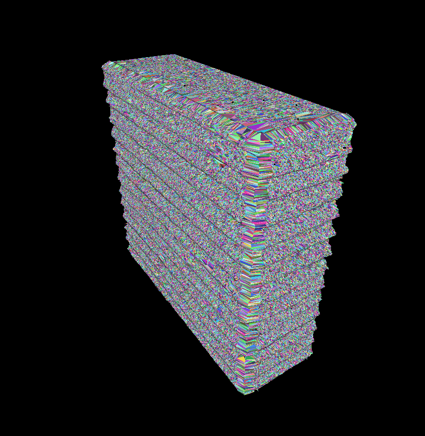 직각으로 눕히면 밋밋하니 40도정도 눕혀서 비스듬하게 쌓아올릴 계획이다. 마찬가지로 복사해가며 빠르게 만들어가자. 양 옆을 복사할 땐 기존 Gizmo를 별 문제없이 활용할 수 있지만, 층을 쌓기 위해 복제를 하면 살짝씩 어긋날 수 있다. 이것은 월드, 로컬 Gizmo에 따라 조금씩 차이나는 것인데, Ctrl + `를 눌러주면 Gizmo의 유형이 바뀌니 로컬로 바꿔서 층을 쌓아주면 빈틈없이 깔끔하게 복사가 되는 것을 볼 수 있다.
