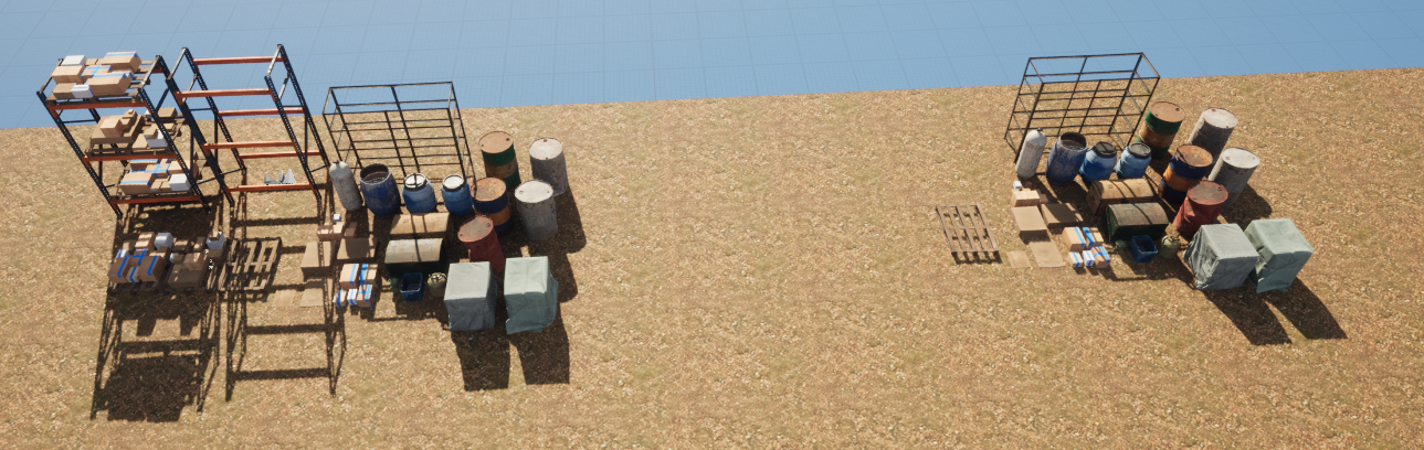 이렇게 새로운 드럼통이나 포장된 상자더미, 나무상자 등을 새로이 받아 몇몇 레벨 인스턴스를 더 만들 것이다.